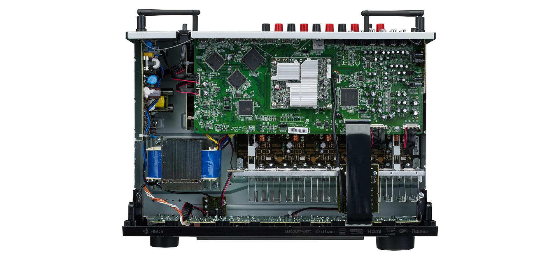 Featuring discrete high-current power amplifiers on all channels, the AVR-S650H delivers maximum performance and 150W per channel (6 ohms, 1 kHz, THD 10%, 1 ch driven). With low impedance driver capability, it offers operational stability with a wide range of speakers for balanced, quality sound.