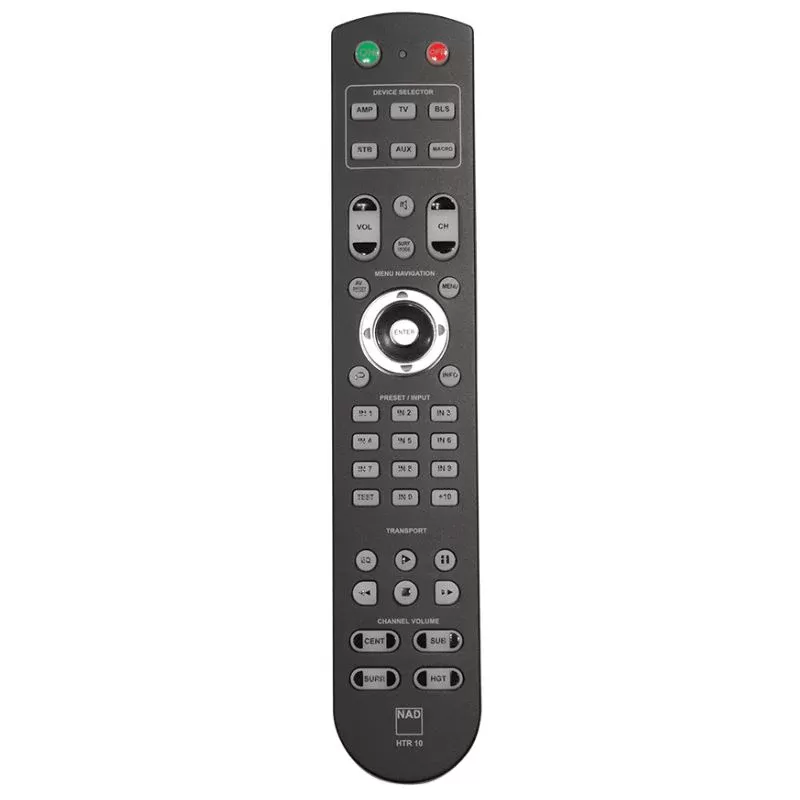 The HTR 10 Remote Control is designed to meet the current and future needs of home entertainment with key features such as punch-through volume, IR learning, macro, direct source access and channel volume adjustments. The cursor section of the HTR 10 is designed with surrounding buttons which allow for more effective navigation. As a response to the demand for channel adjustment within an Atmos theatre design, a button to allow for volume adjustment of height channels has been added.